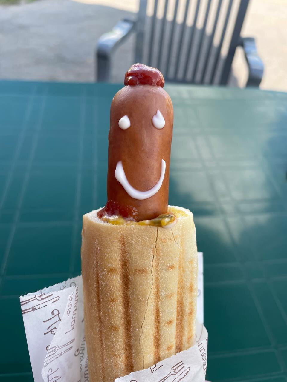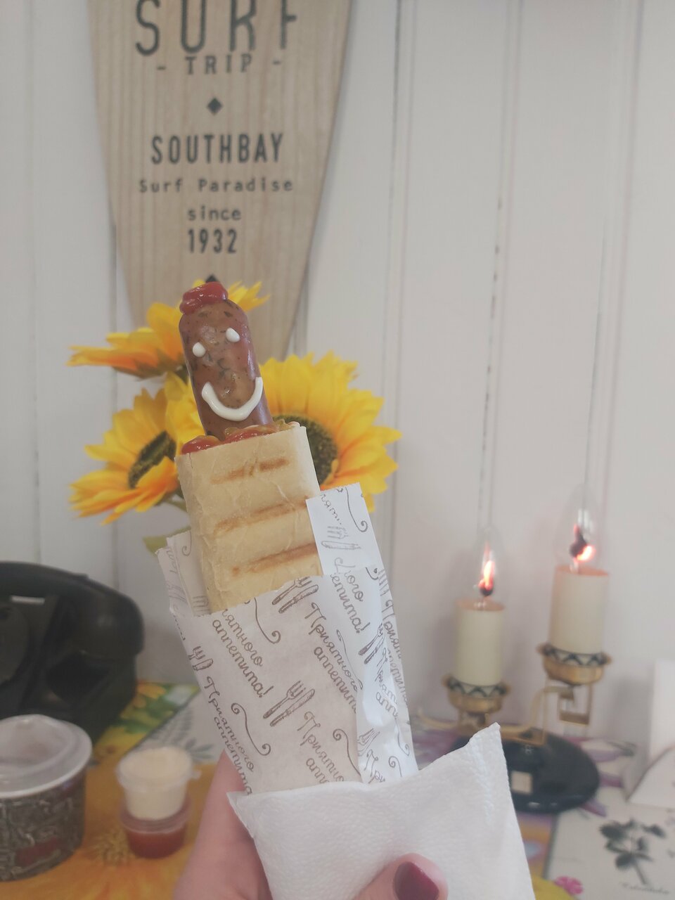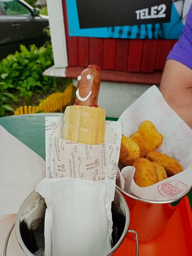 Отличное кафе для перекуса оооочень приветливый персонал! Огромное спасибо! Сосиска со смайликом отдельное исскуство!